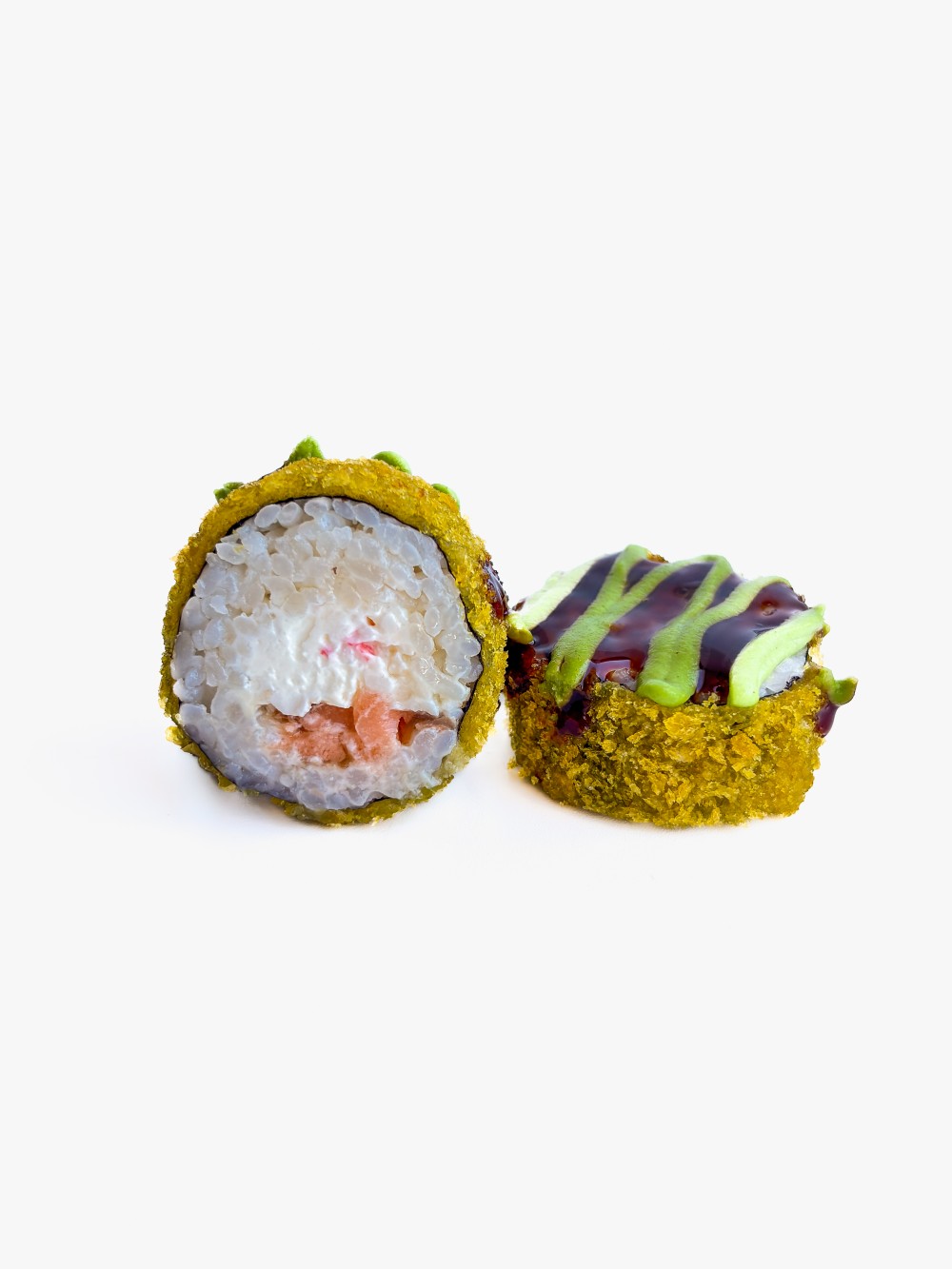 Лосось, крабовое мясо, сыр, унаги и васаби соус