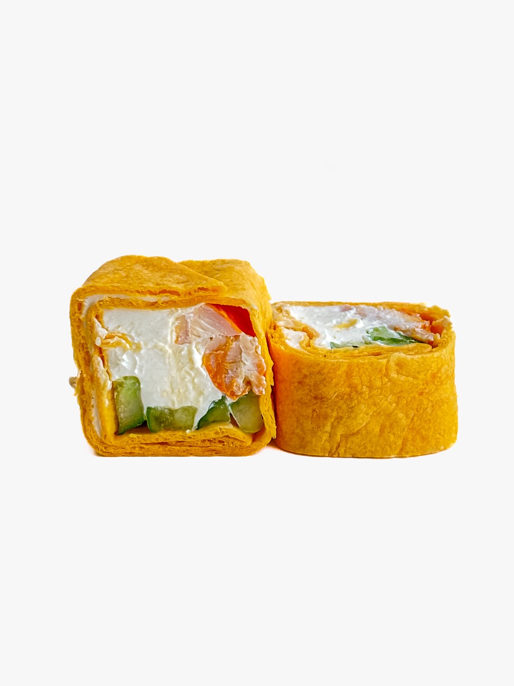 Мексиканская лепёшка, лосось, огурец, сыр, икра тобико