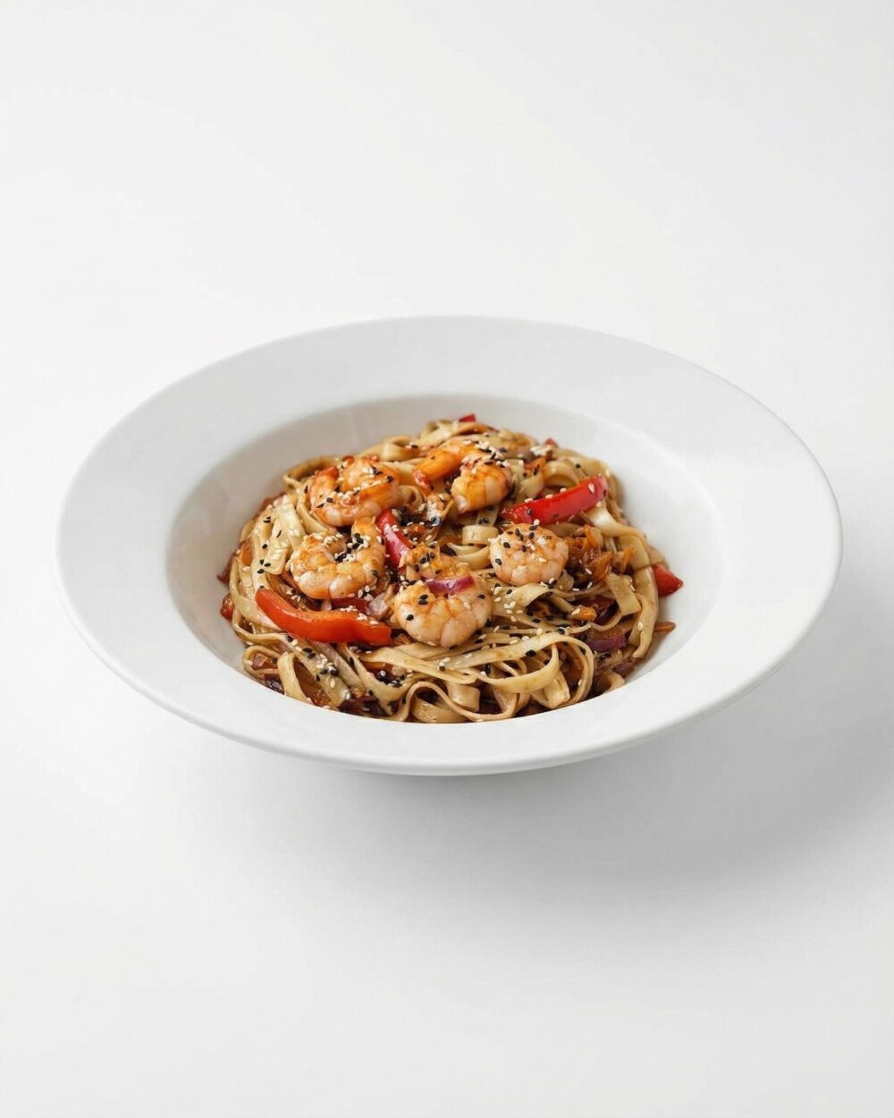 Пшеничная лапша, овощной микс, морепродукты, фирменный соу, кунжут