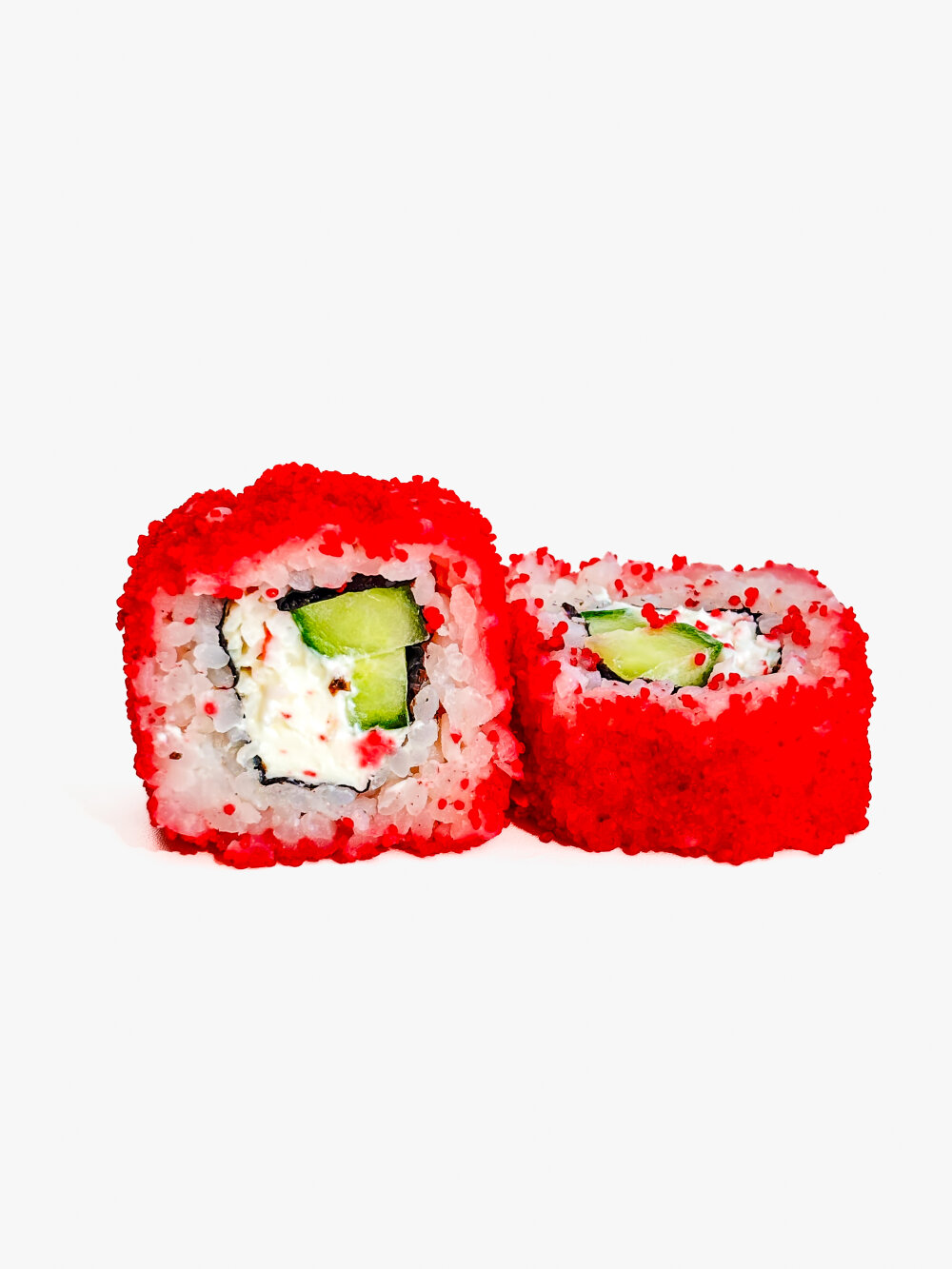 Ролл в икре тобико с снежным крабом, сливочным сыром и огурцом