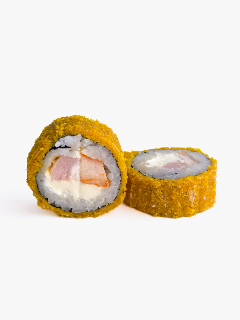 Ролл темпура с беконом, копчёной курочкой, соусом Чеддер и сливочным сыром.